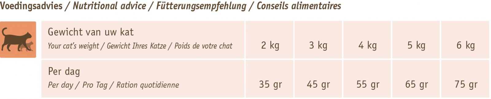 Healthy, grain-free and balanced food for adult cats from 1 year of age. Very suitable for cats with a sensitive digestion and for cats with long hair. Rich in Omega 3 and 6 fatty acids for a healthy, shiny coat.