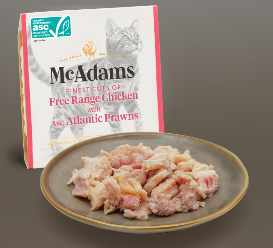 Premium cat food made from delicious pieces of free-range chicken, gently prepared with ASC certified Atlantic shrimp and added minerals.