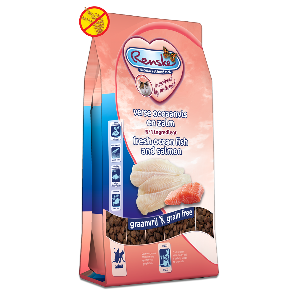 - Freshly prepared ocean fish as main ingredient (28%, total animal ingredients 65%)