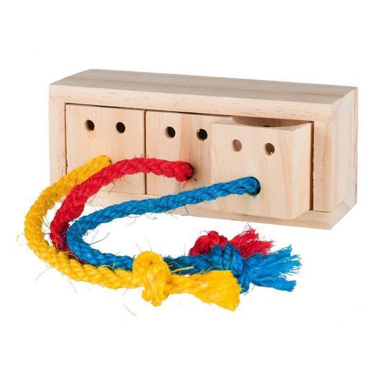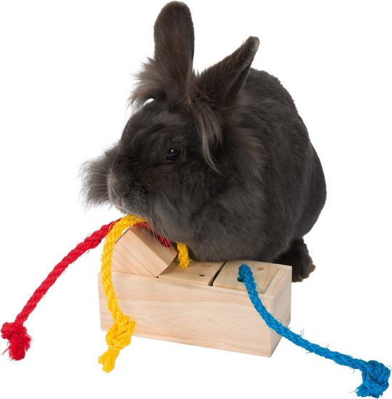 The snack Cube is an educational toy for the rodent. By pulling one of the three ropes, the animal can be spoiled with its favorite snack. This allows him to play (and chew) while learning, which is good for mental stimulation.