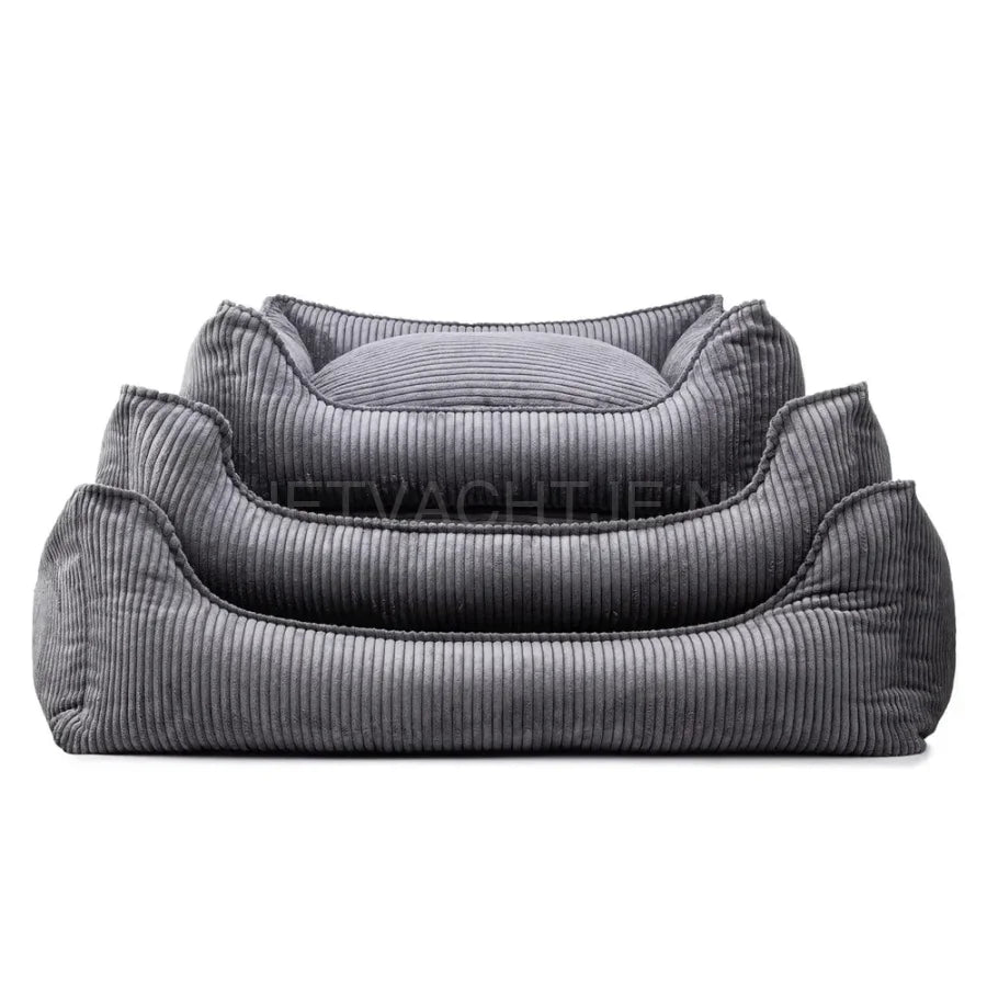 Charcoal orthopedisch corduroy hondenbed in diep donkergrijs. Combineert stijlvolle luxe met ongeëvenaard comfort voor uw hond